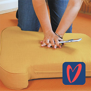 - Practice chest compressions on a couch seat cushion with guidance and feedback from your phone
