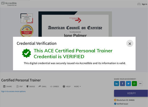 ACE digital certificates and badges are secured through a partnership with Accredible, enhancing your credibility in an easy verification system. When people click on your digital badge, they are taken to a secure page that verifies the authenticity of your credentials.